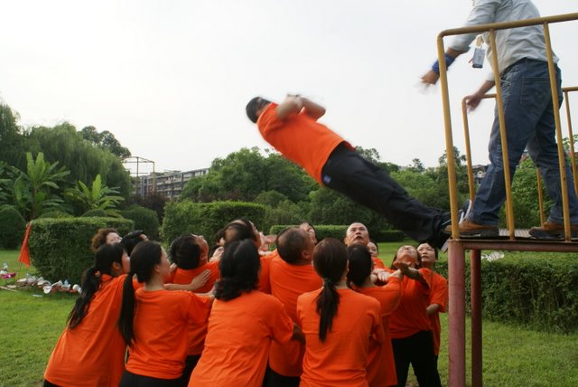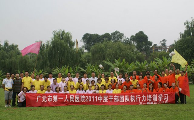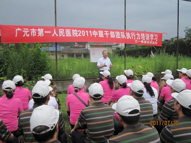 为进一步加强团队建设,为中层干部提供一个沟通、交流平台,提升团队意识,激发潜能,提高工作激情和热情,增强团队凝聚力和协作力,打造高绩效执行力团队。我院于7月30日-8月1日及8月2日-8月4日在“三一鼎盛.龙泉.培训基地”分两批对全院120余名中层以上干部及机关管理工作人员进行了主题为“团队凝聚,沟通协作,高效融合,释放激情”拓展培训。此次培训活动,院领导高度重视,事前专门召开会议研究和讨论相关培训内容,并定格为“2011中层干部团队执行力培训学习”,院领导全程参加了培训,杨晋平院长两批培训均亲临现场督导,鼓舞士气。