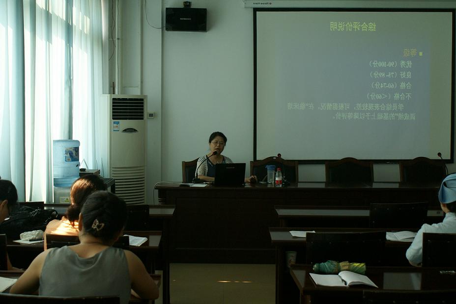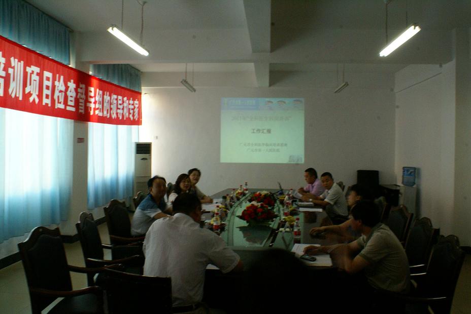 上午八时三十分,我院四楼会议室,市卫生局机关党委书记罗镔代表市卫生局对我市全科医生转岗工作作了汇报;我院科技副院长张建军博士对医院五年的全科医生岗位培训和转岗培训工作进行了多媒体演示汇报。此后,专家们进行了现场查验、调阅原始资料,对学员的住宿和生活情况进行了检查;张梅教授代表省培训中心召集在我院培训的学员进行了座谈,座谈会气氛活跃。