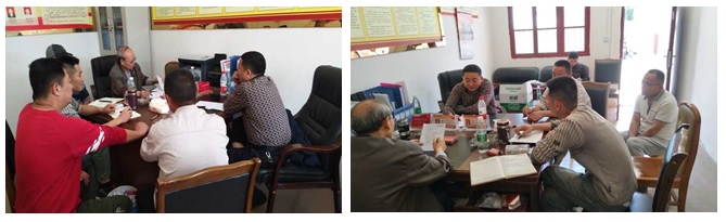 4月19日下午,我院工会主席、驻村工作队队长廖雁带领全体驻村工作队成员在石门乡铧山村委会与石门乡党委书记刘开俊、副书记陶建平及党政办主任冯小林,铧山村支部书记、主任韩其林、村副主任罗雄,寨包村支部书记张翔、村副主任曹树军等乡村干部召开工作会, 专题研究我院帮扶村产业发展规划调整方案,安排部署贫困村及贫困户、非贫困村中插花贫困户帮扶工作。