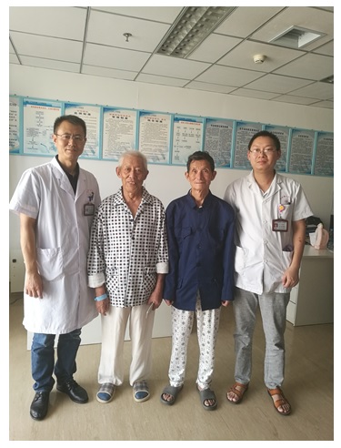 食管癌我国高发恶性肿瘤,过去很多高龄食管肿瘤患者在确诊后都放弃救治或采取姑息治疗,如今,随着医疗水平的提高,这一观念逐步转变。近日,我院心胸外科成功为两位高龄食管癌患者实施了手术治疗,解除了患者的痛苦。出院前,两位78岁高龄老人高高兴兴在医生办公室合影留念,相约珍惜生命,十年后再相见,绝不辜负医生的倾心治疗。
