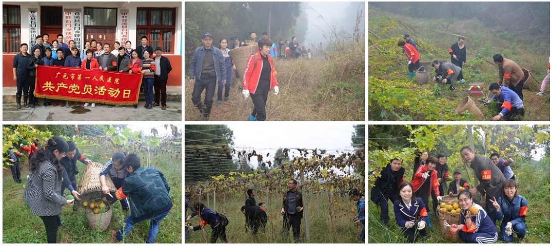 10月26日,市第一人民医院住院部党总支按照院党委“贯彻十九大·党员干在前”工作思路,组织党员志愿者前往扶贫村——苍溪县石门乡铧山村,以扶贫助农抢收瓜蒌、捐赠图书、城乡党建结对共建行动等形式,开展丰富多彩的党日活动。院党委书记吴春瑛、工会主席廖雁、纪委书记晏荣及驻村干部、住院部党总支七个支部的党员志愿者参加了党日活动。