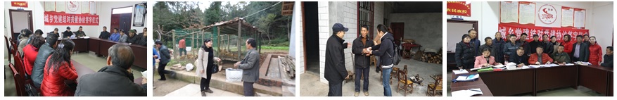 在文家角村主要开展了以下活动:一是组织帮扶干部、村组党员干部、贫困户等认真学习党的十九大报告精神,重点宣讲了《新时代中国特色社会主义思想的“八个明确”》、《新时代坚持和发展中国特色社会主义的14条基本方略》、《坚定不移全面从严治党的八个方面》及《十九大新党章修改了哪些内容》等;二是举行“城乡党建结对共建协议”签字仪式,工会主席、驻村工作队队长廖雁在会上就开展“城乡党建结对共建”活动的总体要求、目标任务、工作方式、重点任务、组织领导、时间节点及协议主要内容进行了说明,行后离退休总支书记朴淳与文家角村支部书记李育中在会上签定了《城乡党建结对共建协议》;三是举行向文家角村赠送《中国共产党第十九次全国代表大会文件汇编》、新《党章》读本及向贫困户家庭中的14名在读小学生捐赠书包、文具捐赠活动;四是召开贫困户座谈会,宣讲党的扶贫政策,对贫困群众进行感恩教育,安排做好易地搬迁户厕所修建扫尾工作;五是召开帮扶干部工作会,由村支部书记李育中向大家介绍迎接各级脱贫攻坚检查验收准备工作情况、存在的主要问题及下一步整改措施等,驻村工作队队长廖雁及驻村第一书记袁伟平分别就《帮扶工作纪实》、《帮扶手册》填报中注意事项、填写要求等进行了讲解,并对本次入户帮扶具体工作提出要求;六是帮扶干部入户拉家常,向结对贫困户捐赠棉被毛毯、棉衣羽绒服及厨具等,帮扶易地搬迁户启用灶具,了解贫困户生产生活情况、捐赠的鸡苗及杷柑、花椒苗长势和明年产业发展、致富增收打算,指导治理房前屋后、室内室外环境卫生,养成良好卫生习惯等。帮扶干部赵和义还出资900元购买了四组身患残疾的贫困户马全模创作的“笋壳画”,鼓励其创业增收。
