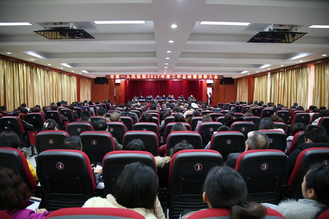 2月1日下午,我院在学术报告厅隆重召开2017年度工作总结暨表彰大会。会议由党委书记吴春瑛主持,市卫计委主任袁明胜、工会主席周胜志,医院领导班子、中层干部、部分职工代表、受表彰人员代表及离退休干部共计300余人参加了会议。