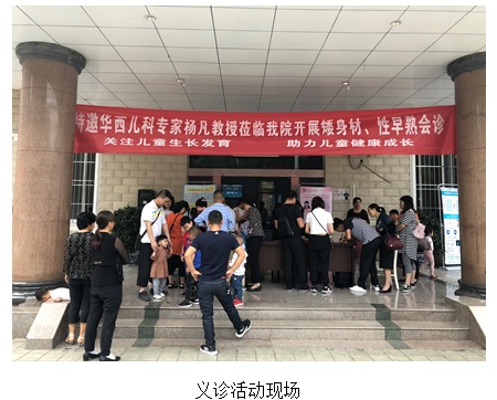 此次活动在我院微信公众号推送后,众多家长积极响应,踊跃活动。本次义诊主要是针对3-15岁有矮身材、性早熟的儿童和青少年。活动中,医院免收挂号费、免费测量身高体重、免费进行生长发育评估、免费进行终身高预测,针对不同年龄段进行生长发育及保健指导,并让身高低于P3及性早熟的患儿参加华西儿科专家杨凡教授的会诊。