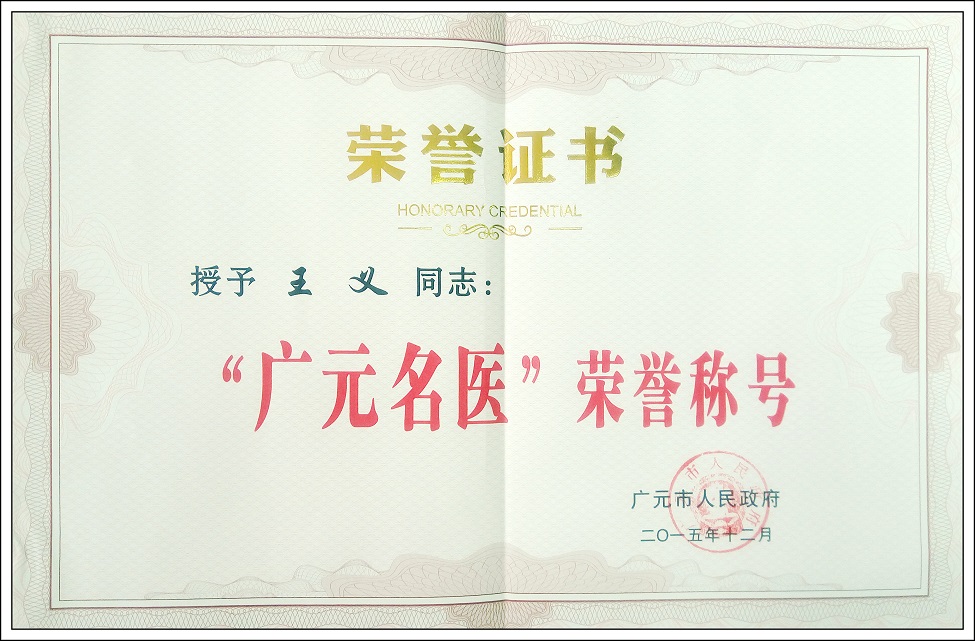 “对百岁老人实施全身麻醉下手术!”王义通过综合分析和经验判断,和家属充分沟通后,决定对百岁老人实施全身麻醉下手术,立即完成麻醉预案,术中选用超短效麻醉剂,维持平稳麻醉,维持心血管功能和血液动力学的稳定,在医疗小组的精心麻醉、手术和护理下终于顺利完手术,患者奇迹般渡过了麻醉、手术难关,百岁老人顺利康复出院,同事们评价为创造了医疗奇迹,打破了医院的高龄手术的记录,得到家属和医院的称赞,充分展示了高超的医疗技术和过硬的本领,事迹登载广元日报。