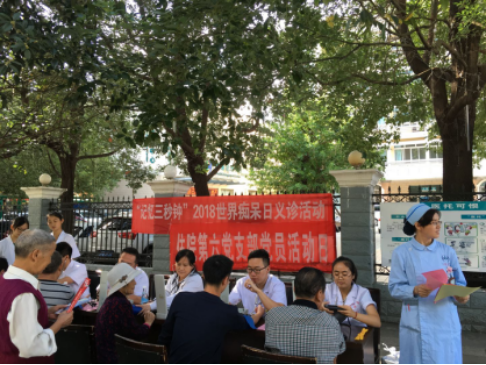 义诊活动中,医务人员及支部党员耐心地为前来咨询的群众解答关于痴呆预防、早期表现的识别及照料等方面的问题,并现场为怀疑有早期痴呆表现特征的群众进行认知功能障碍的初步筛查,免费为他们进行测血压、心肺听诊等检查。除此之外,我院医务人员还为家中有痴呆患者的群众发放黄手环,方便存留患者信息及家人联系方式,防止患者走失。