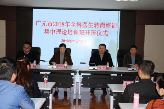 2018年11月12日上午,广元市全科医生转岗培训班开班仪式在市第一人民医院隆重举行,市卫计委党组成员、直属机关党委书记张玉琼做动员讲话,市第一人民医院院长刘峰致欢迎辞,市卫计委科教科科长任军主持会议。
