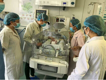三胞胎兄弟转入新生儿科后,医护人员立即按照治疗预案,为三个宝宝吸痰,清理呼吸道,上呼吸机辅助通气,使用肺泡表面活性物质。同时,针对三个宝宝重度贫血,肺部感染、新生儿黄疸,吮吸能力差,分别给予抗感染、输血纠正贫血、静脉营养、退黄治疗等对症支持治疗。
