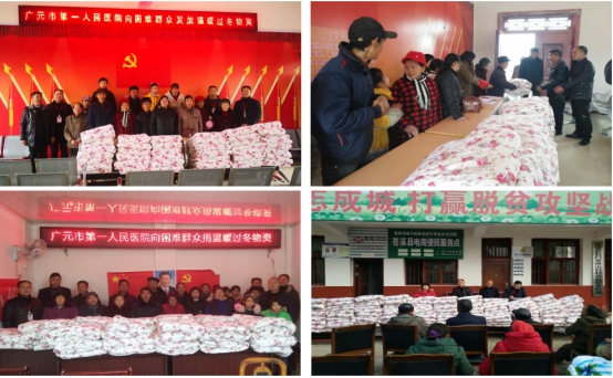 为切实解决贫困群众农副产品销售问题,保障困难群众温暖过冬,过个幸福年。一月上旬,市第一人民医院党委吴春瑛书记带领医院领导班子成员以及结对帮扶干部相继前往苍溪县石门乡帮扶的铧山村、文家角村、寨包村开展驻村调研及“三同”活动,并迅速组织筹划“以购代扶”、“送温暖”等活动,有效解决调研中发现的问题。
