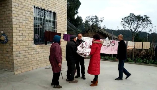 1月16日,驻村工作队、村干部组织困难群众领取过冬物资,还亲自将棉被送到了行动不便的困难群众家中。摸着手里软绵绵的被子,困难群众们满脸笑意,一边鞠躬一边感激地说道:“谢谢你们的帮助,谢谢医院的关心和问候,你们就像亲人一样!”