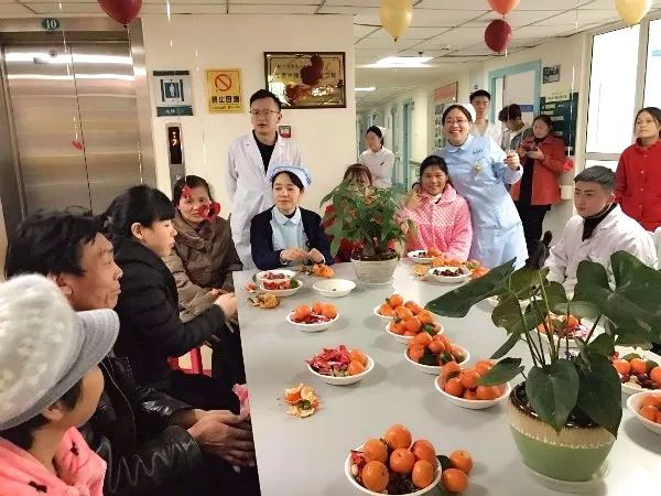 开展有奖竞答比赛,过年期间什么可以吃,什么不能吃;耐心倾听病友心声,鼓励病友战胜病魔,早日康复;为患者增添瓜果,其乐融融。