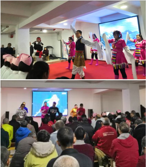 志愿者和表演者一起合唱了一曲欢快的《恭喜发财》