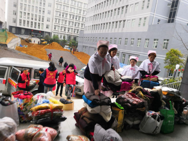 腊月二十七,产科携手春蕾爱心协会一起为市第四人民医院的精神病患者送爱心。
