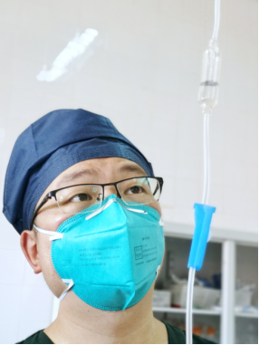 胸前流淌的是汗水,肩上扛着的是使命。7月的卡松果已进入雨季,高温潮湿,闷热的手术室里没有空调。贾绍茂身着手术服,手术还未开始,汗珠便已满布额头。贾绍茂凭着过硬的技术,成功为患者实施精准穿刺,充分体现了他处理疑难危重病例的综合实力和技术水平。此外,他还要做一系列检查、核对,配合手术医生,及时提供台上所需物品……一台手术下来,汗水早已浸透了手术服。