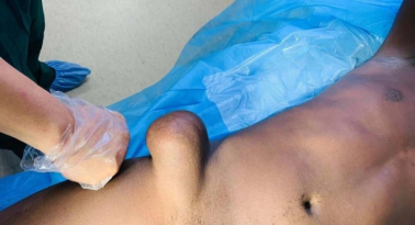 2021年7月7日,援非已有三个月。这一天对于贾绍茂具有十分重要的意义。贾绍茂同川北医学院、四川省骨科医院三位外科医生在卡松果医院完成了一台右侧腹股沟巨大肿瘤摘除手术,这是近10年来中国援比绍医疗队在卡松果医院完成的第一例手术。