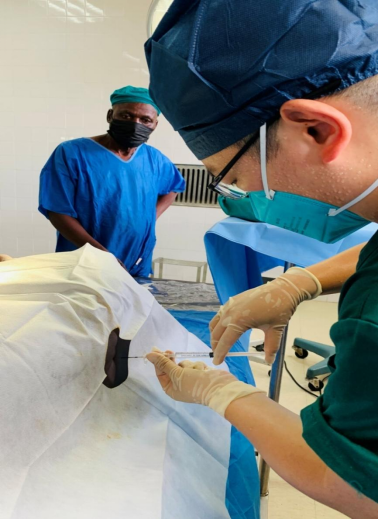 一台手术的成功离不开一名优秀的麻醉师。在这台具有里程碑意义的手术中,广元市第一人民医院援非麻醉医生贾绍茂为患者精准实施腰硬联合麻醉术,为手术的顺利实施提供了坚实保障。
