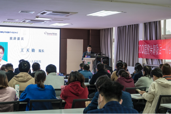 王天勋院长在项目启动大会上致欢迎辞。他表示,广元市第一人民医院成为省内房颤百县工程第一试验小组的十家医院之一,既是机遇也是挑战。本次启动会的召开,为我市心脏电生理专业的发展搭建了一个分享经验、学习交流、共话发展的平台。莅临大会的各位专家、教授都是心血管内科电生理的领军人物,有着深厚的学术功底和丰富的临床经验。West China百县工程这一高质量平台,对于规范医院乃至我市房颤疾病的规范化诊治,提升医院在心脏电生理专业的影响力具有十分重要的意义。同时希望通过本次合作能借助成功的经验,搭建地方房颤诊疗联动网络的有效方法,实现本地房颤规范化诊疗及综合管理。