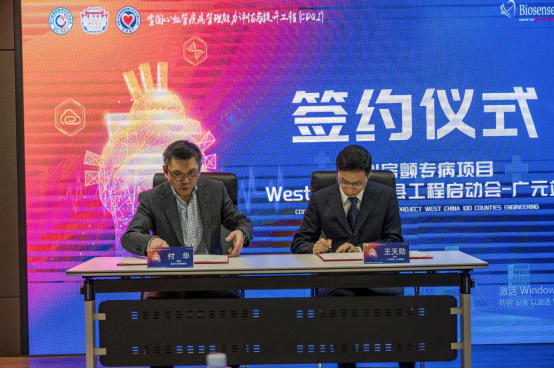 随后,广元市第一人民医院王天勋院长和四川省CDQI房颤联盟代表付华教授进行了项目签约,并合影留念。