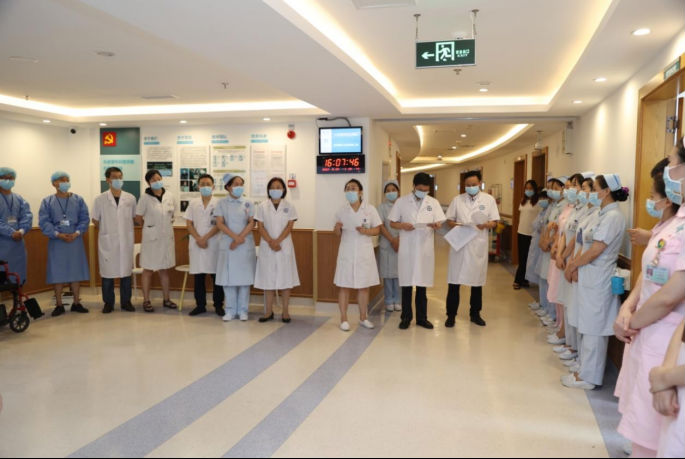 演练围绕病区发现新冠核酸检测阳性患者的应急处置展开,包括病区二级分诊处接诊的预检分诊、过渡病房安置及使用规范、发现病人核酸检测阳性后的逐级上报、启动相应应急预案、阳性病人的规范转运、穿脱防护用品、病人离开病区后环境等终末消毒等环节。