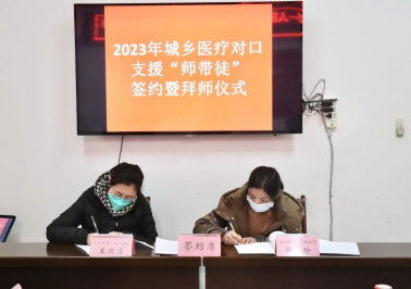 在青川县第一人民医院,双方院领导代表签订支援协议,举行了“师带徒”拜师仪式。