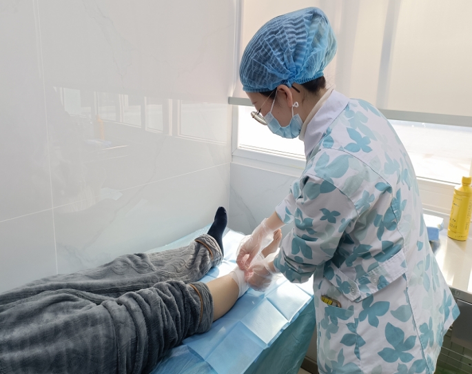 “两个多月前因为磨破了点皮,当时没有在意,后来发红流水,又肿又痛,诊所和其他医院都看了,伤口一直反反复复不见好,还越烂越大,谁知道一个小小的擦伤竟变成了一个“大窟窿”,听说你们医院有一个专门治伤口的门诊,效果还不错,所以想着来试一试。”一旁王阿姨的儿子说道。