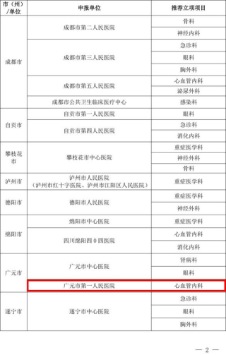 日前,四川省卫生健康委公布了 2023年省级临床重点专科建设项目遴选结果:广元市第一人民医院心血管内科经过层层遴选,成功获批省级临床重点专科建设项目,成为我市唯一入选的心血管内科,标志着医院心血管内科医疗技术水平和服务能力跻身全省先进行列。