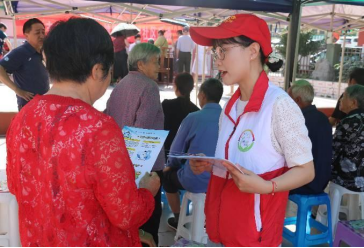 志愿者们一边热情地发放宣传资料,科普抗菌药物合理使用、识别脑卒中、预防流感等知识,一边为居民做健康问卷调查。