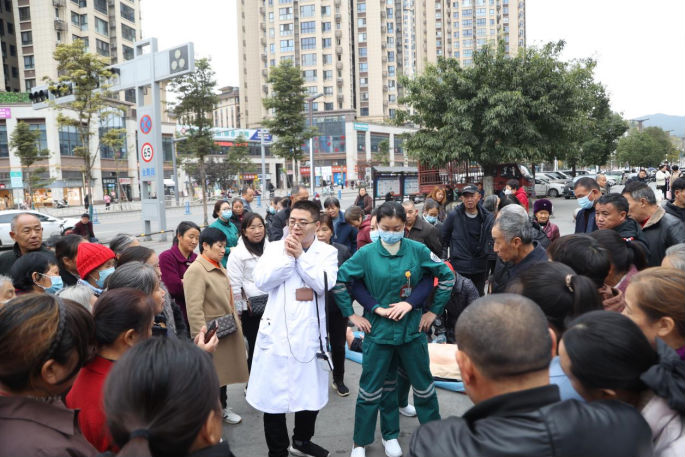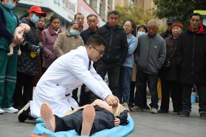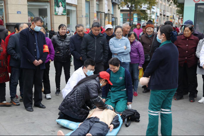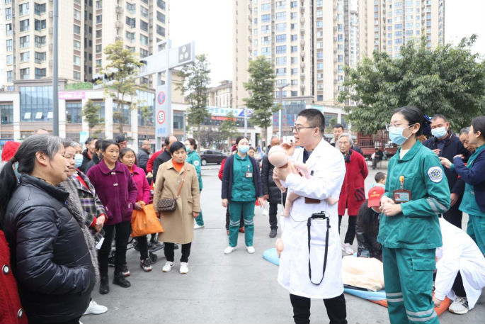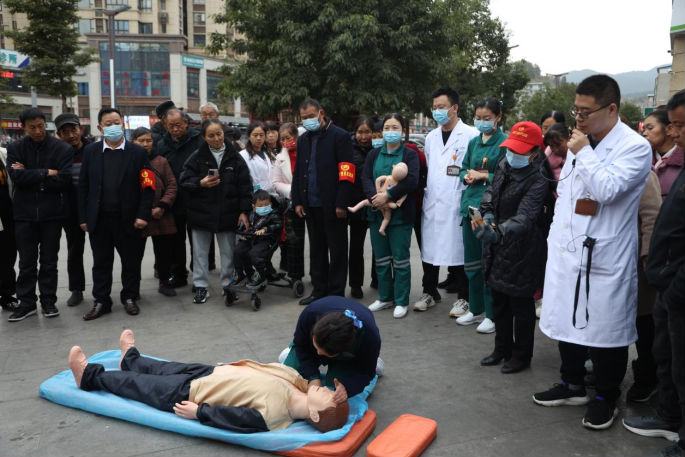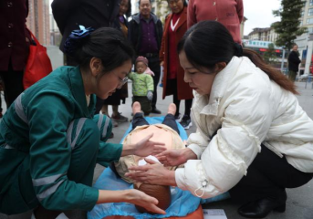 日常生活中,很多人面对心脏骤停、呼吸道异物堵塞等突发意外情况都束手无策亦或是手忙脚乱不知如何正确紧急施救。为进一步强化广大居民的自救互救意识,提升全民急救能力,挽救更多的生命,2023年11月29日,广元市第一人民医院急诊科、宣传统战科联合雪峰寺社区居委会举办了一场生动有趣的急救知识培训,吸引了往来百余名市民驻足围观学习和参与。