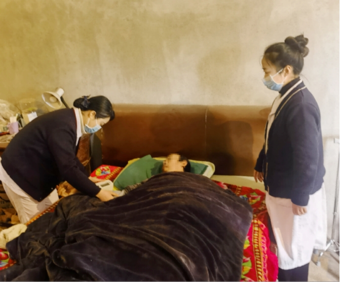 活动中,卒中团队还为几位因腿脚不便、瘫痪在床的村民提供上门服务,把健康送到村民家中。