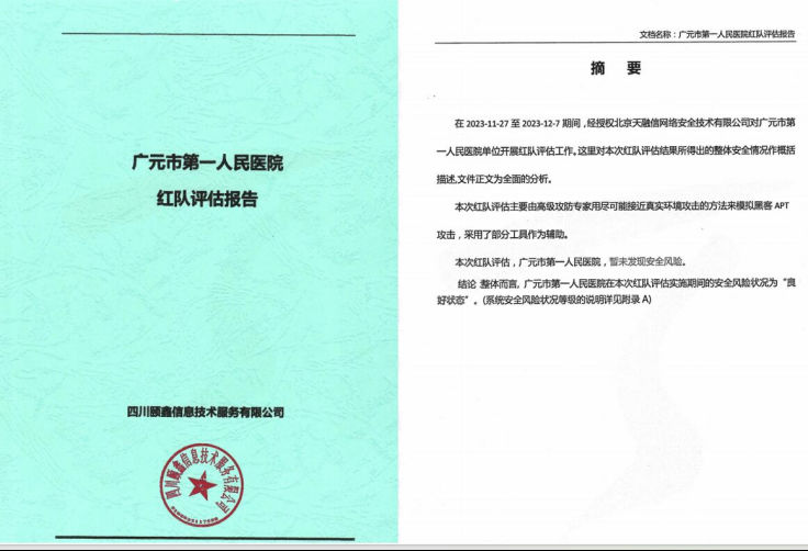 此前,在卫健委组织针对全市医疗机构组织的高级攻防专家模拟黑客APT攻击演练中,市第一人民医院安全风险状况评估结果为“良好状态”,是全市唯一一家成功防守的卫生医疗机构。