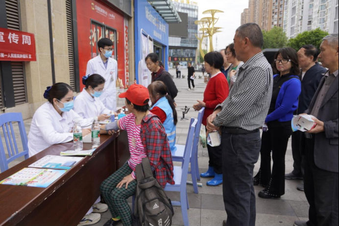 4月17日,肿瘤科组织医务人员在金橄榄广场开展“综合施策 科学防癌”主题肿瘤防治宣传义诊活动。肿瘤科张建勇副主任医师、姚成主治医师,张晓霞护士长、王清华主管护师等肿瘤专科医务成员为广大患者提供肿瘤义诊服务,答疑解惑、分发宣传手册,还为老人们提供测量血压,测血糖等暖心服务。