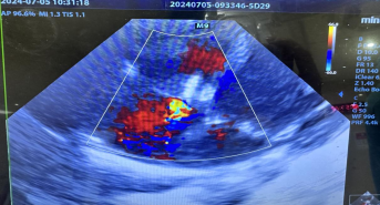 7月3日,在父母的陪伴之下,嘉嘉入住市第一人民医院心血管内科一病区等待进一步手术治疗。完善心脏彩超显示:室间隔缺损(膜周型)伴假性膜部瘤形成,室水平左向右分。同样经过多学科联合讨论,科室为嘉嘉量身定制了经皮室间隔缺损封堵术的介入手术及相关麻醉方案。