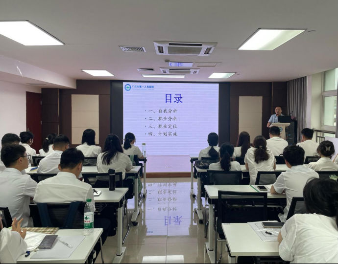 党委副书记邓启东从医院历史和发展战略等方面对医院的发展进行了详细的介绍;党委委员、副院长何东权以“大医精诚,止于至善”为题,让新员工深刻领会了提升个人专业素质和道德修养的重要性;党委委员、工会主席李筠指出医院文化是医院的底蕴与灵魂,通过播放医院宣传片和解读“072精神”的方式介绍了医院文化体系和文化建设,增强了大家对医院的认同感和归属感;党委委员、副院长肖南平同志在深刻解读了“博学精医,知行合一”的学风和“明德、致和、精医、创新”的院训,叮嘱各位新职工要遵守临床实践与医疗科研中的道德要求,努力提升自身的医德修养;副院长马刚在职业规划课上结合自身的工作经历强调青年员工要紧跟时代的步伐,认真履行职责,脚踏实地工作。