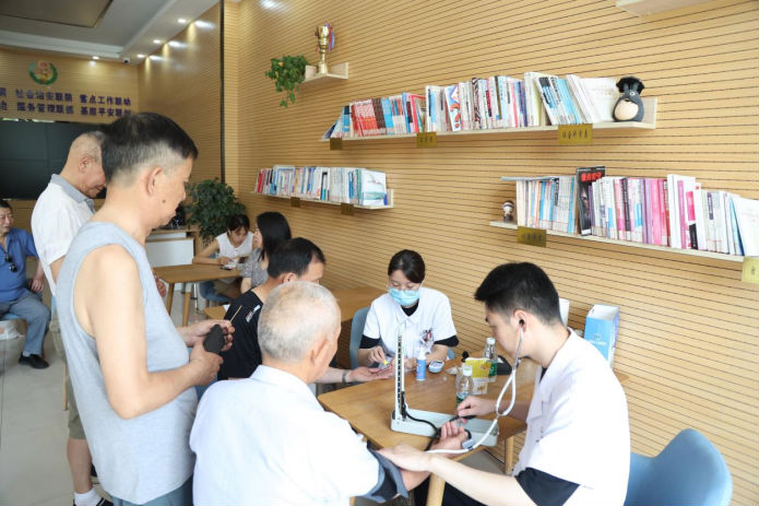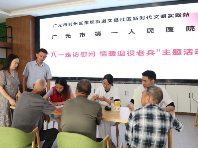 为庆祝中国人民解放军建军97周年,深切关怀退役军人身体健康,进一步推动新时代的双拥工作,促进军民团结,2024年7月31日,市第一人民医院党委办公室联合党支部组织医务人员深入文昌社区、雪峰寺社区开展“情暖老兵 健康守护”义诊慰问活动,切实把医院的关怀和温暖送到困难、残疾等退役军人的心坎上。