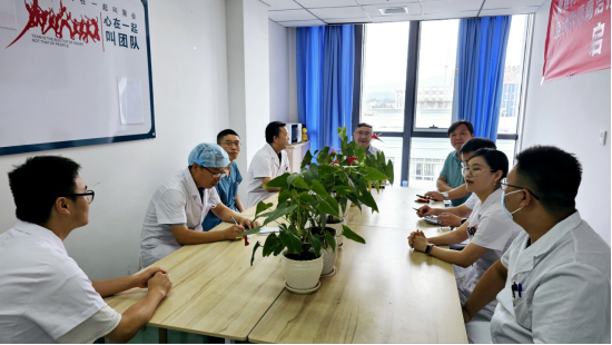 查房现场,主管医生肖开兵介绍了患者基本情况、病程进展、治疗方案、用药情况等内容。随即,黄晓波副院长为患者进行全面查体,详细了解患者身体情况,并在医生办公室进行病例讨论。在场医生积极发言,提出自己的意见和建议。讨论结束后,黄晓波副院长结合查体及患者的诊治经历,为患者制定了个性化的治疗方案。