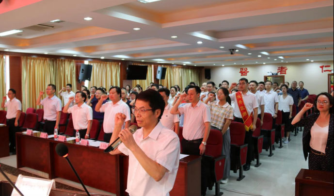 “我宣誓,我志愿献身人类的健康事业;自觉维护医学的尊严和神圣……”在王天勋院长的带领下,全体与会人员一起重温了《中国医师宣言》,字字铿锵,掷地有声,展现了医者的使命担当。