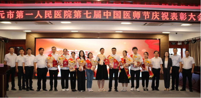 为大力弘扬“敬佑生命、救死扶伤、甘于奉献、大爱无疆”的崇高职业精神,团结凝聚广大医务工作者与党同心、与党同行,切实担负起推进健康中国建设、保障人民健康的神圣使命,谱写新时代卫生健康事业高质量发展新篇章,2024年8月16日下午4点,广元市第一人民医院于学术报告厅隆重举行了第七个中国医师节庆祝表彰大会。院党委书记边恩元,党委副书记、院长王天勋等院领导出席会议。临床非值班医技人员、相关职能部门负责人及获奖医师参会。会议由党委委员、副院长何东权主持。