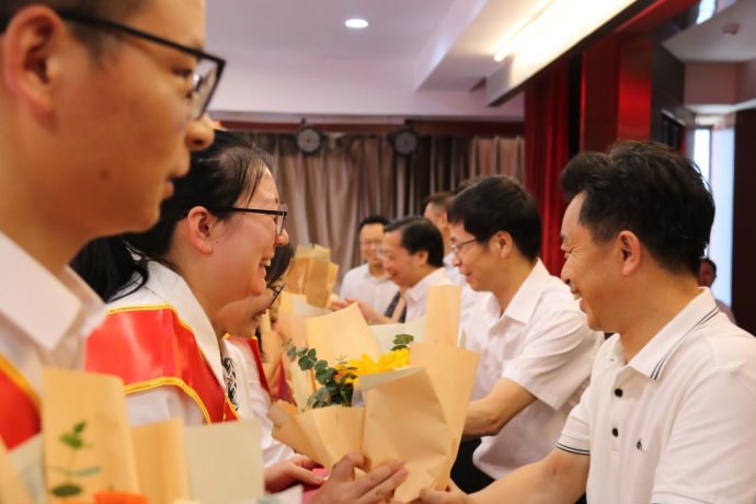 在阵阵热烈的掌声中,院领导班子为获奖者进行了颁奖。