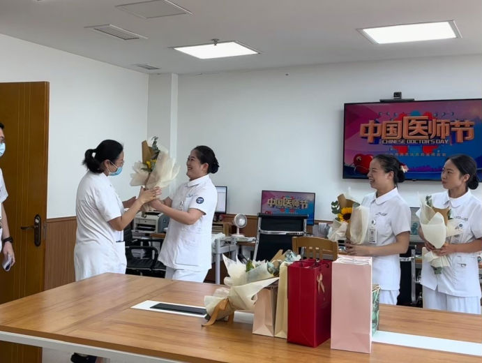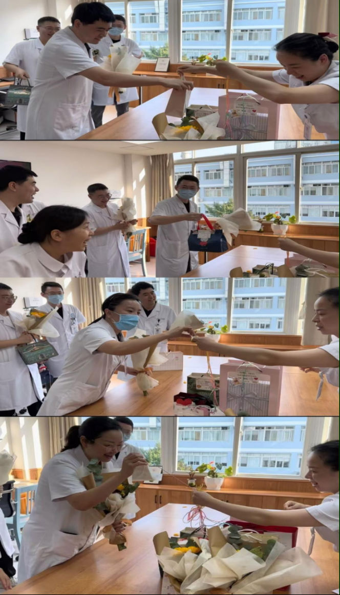 “你们是那道最耀眼的光芒,用无尽的智慧和辛勤的汗水,编织出一幅幅救死扶伤、温暖人心的壮丽画卷。”节日到来之际,科室护士姐妹早早准备好礼物与鲜花,为战友送上最真挚的祝福。