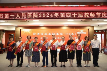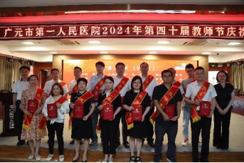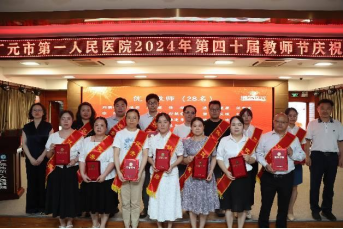 为庆祝全国第40个教师节,2024年9月10日,广元市第一人民医院于学术报告厅召开教师节庆祝大会,对过去一年来在教学工作涌现出的先进集体和个人进行表扬,激励全院教师和教育工作者积极投身教育强国建设实践,再接再厉、奋发向上,共筑教育新篇章。医院领导班子,相关职能部门负责人,规培基地管理者、全体老师和住培学员代表参加本次庆祝大会。