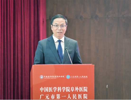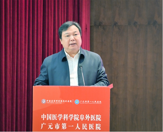 广元市第一人民医院党委书记边恩元向长期以来关心支持医院发展的各级领导以及阜外医院的各位专家,致以最诚挚的谢意。他指出,中国医学科学院阜外医院是国家心血管病中心,是我国心血管疾病防治领域的最高标杆和“国家队”,承载着引领全国心血管学科发展、守护人民心脏健康的重任,与阜外医院建立更加紧密更加深入的战略合作关系,是医院长期以来的夙愿,也是广元及川陕甘毗邻地区广大心血管疾病患者的福音。医院将锚定与阜外医院合作的这一历史性机遇,以更开阔的视野谋篇布局,以更奋进的姿态攻坚克难,充分依托阜外医院在资源、技术领域的标杆优势,补齐自身短板,全方位提升医院在医疗技术、学科建设、人才培养、科研创新及医院管理等方面的综合实力和水平,让广元及周边地区百姓在家门口就能享受到一流的医疗服务,切实缓解群众“看病难、看病远”的问题。