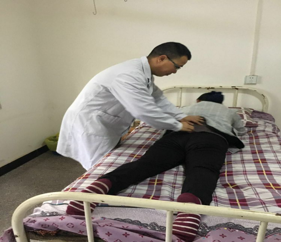 漆丽医生正细心地为类风湿性关节炎老年女性患者诊治,指导其规律用药,定期复查。