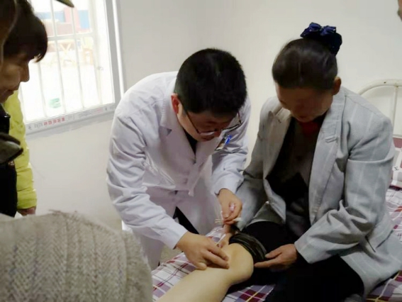 早上八点,医护团队早早抵达了现场,闻讯前来的村民已在村委会卫生室外排起了长龙。