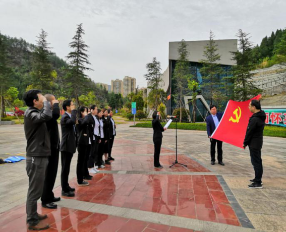 随后,在行后党总支书记张政权的指挥下,大家齐唱《没有共产党就没有新中国》。全体党员面对鲜红的党旗重温了入党誓词。