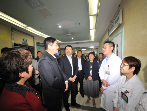 邹自景市长调研走访了医院门诊部、正在筹建中的复合手术室以及心胸外科、妇产科、肿瘤血液科等临床科室。