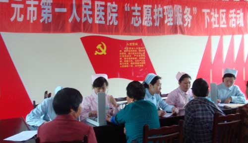 我院开展“志愿护理服务”下社区活动 为贯彻落实党的十七大关于“完善社会志愿服务体系”的工程,及响应卫生部开展“志愿护理服...