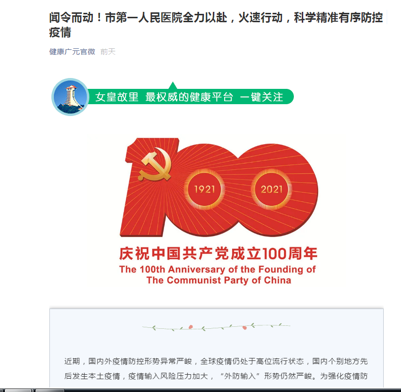 健康广元官微:闻令而动!市第一人民医院全力以赴,火速行动,科学精准有序防控疫情