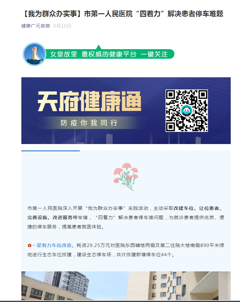 健康广元官微:【我为群众办实事】市第一人民医院“四着力”解决患者停车难题