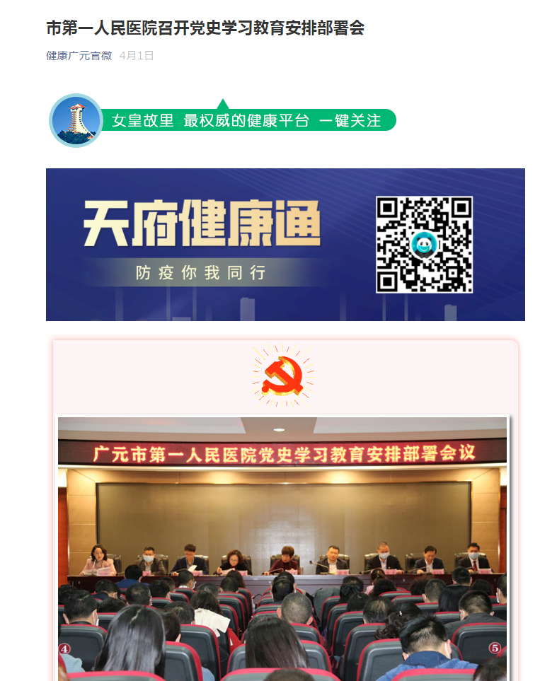 健康广元官微:市第一人民医院召开党史学习教育安排部署会
