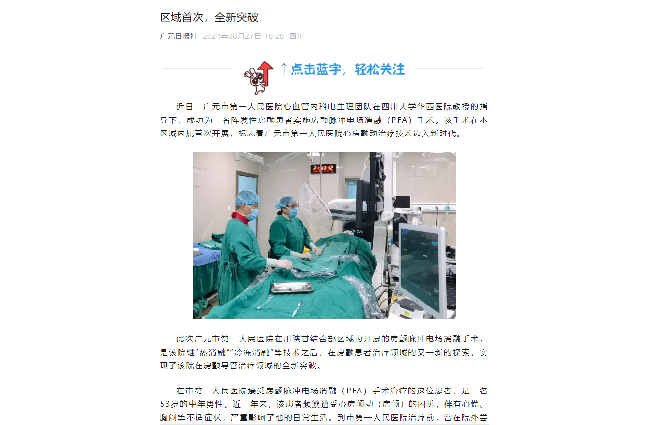 广元日报:赞!这一新技术治疗心脏病仅用30分钟!